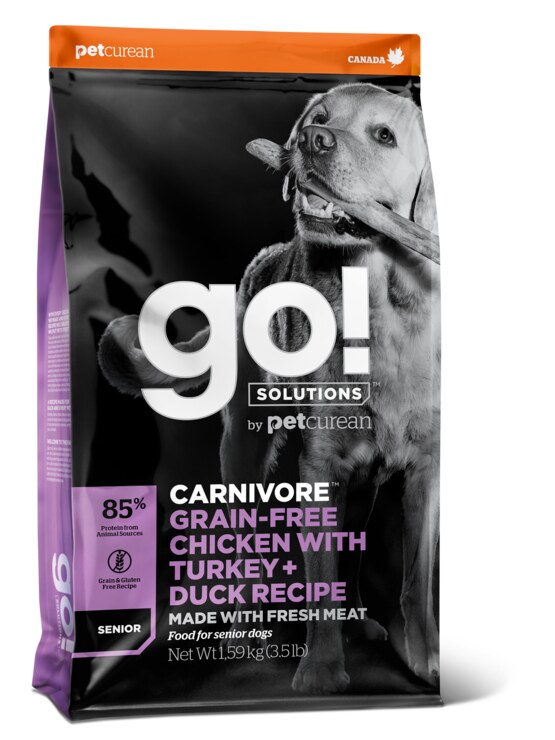 Kompletní krmivo s kuřetem, krocanem a kachnou pro psy nad 7 let v dobré kondici – pro opravdové masožravce.